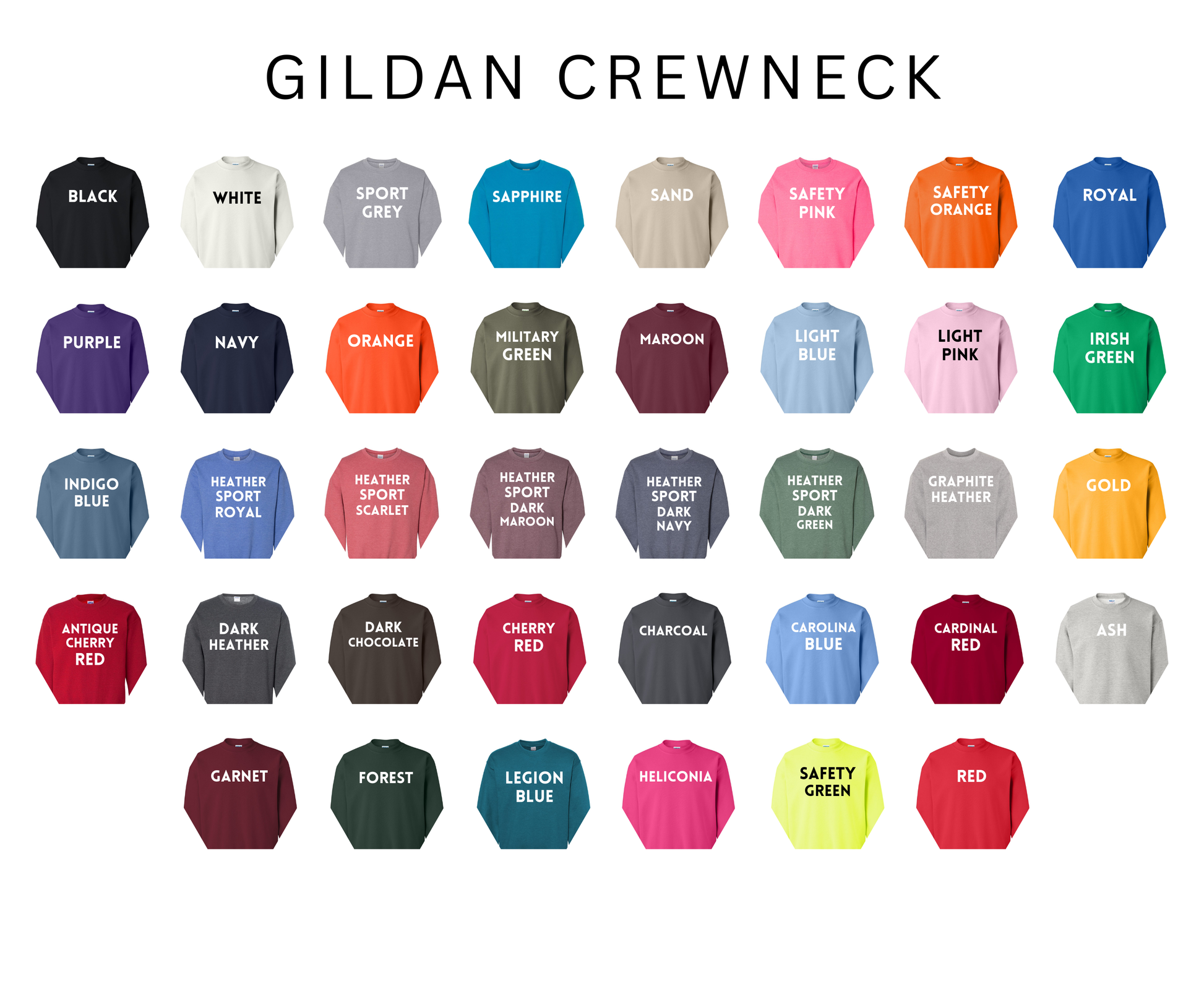 Lots of color options for this one! For lighter colored sweatshirts, image will be black. See color chart. Please note color you would like at checkout.